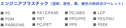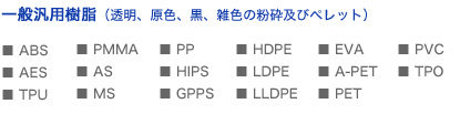 プラスチック原料の再生(リサイクル)事業は、石油化学産業の発展とともに歩んできました。アクリル(PMMA)、ポリエチレン(LDPE、HDPE)、スチロール(GPPS、HIPS)、ABS等、新しい樹脂原料が次から次へと開発、製品化されるにともない、需要が急速に伸びてきました。ここでは、弊社で取り扱いの実績がある数多くの樹脂の中から、いくつかをご紹介いたします。